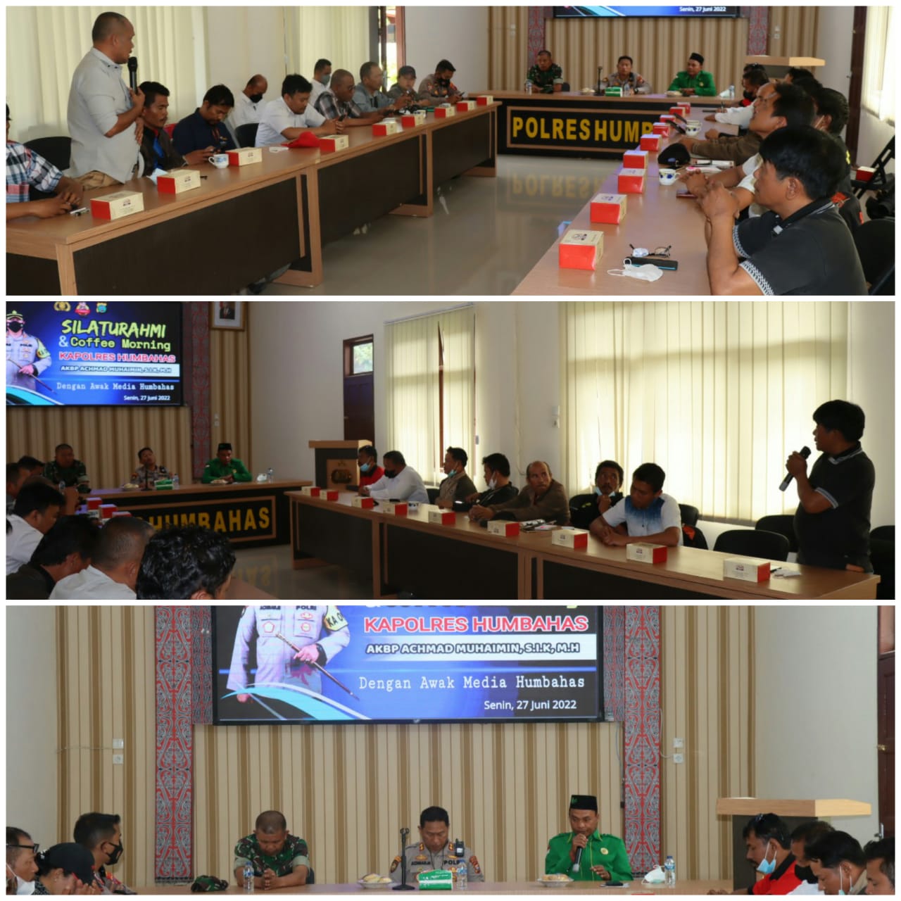 Setelah kegiatan Pemusnahan Knalpot Blong di Halaman Mako Polres Humbahas, Kapolres Humbahas AKBP Achmad Muhaimin,S.I.K,M.H silaturahmi & coffee morning dengan Para Insan Pers Mitra Polres Humbahas di Aula D.P Silitonga Polres Humbahas, Senin (27/06/2022).