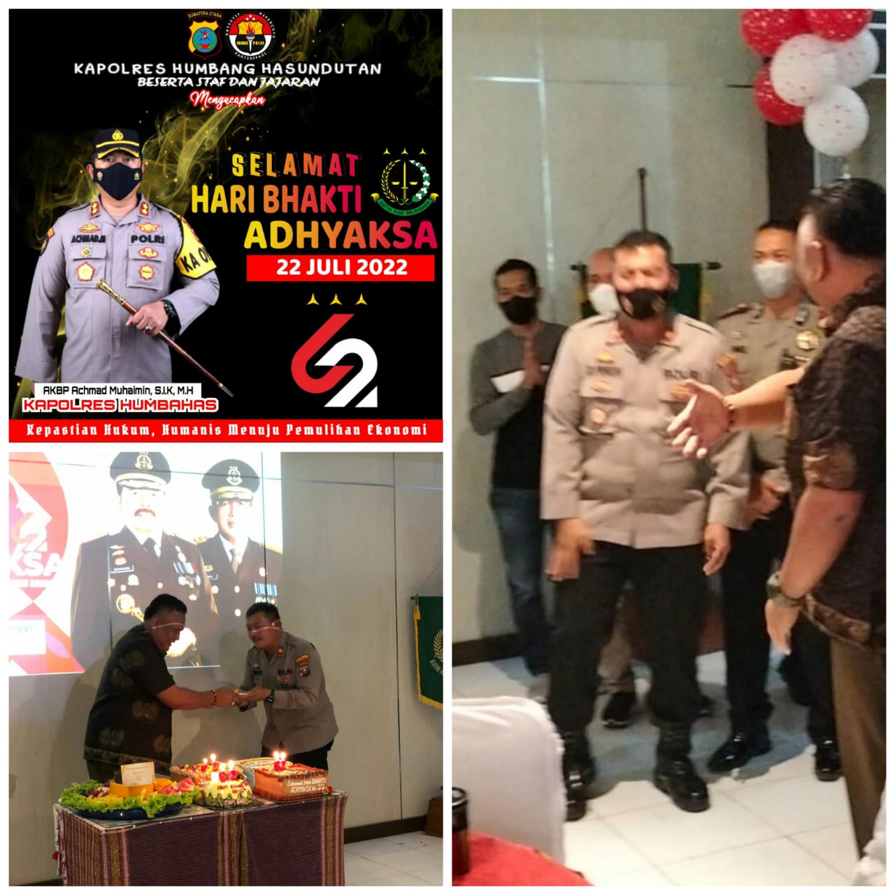 Kapolres Humbahas AKBP Achmad Muhaimin, S.I.K, M.H diwakili Wakapolres Humbahas Kompol D. Pinem dan Para PJU Polres Humbahas memberikan kejutan atau Surprise Hari Ulang Tahun (HUT) Hari Bhakti Adiyaksa Ke 62 kepada Kejari Humbahas Anthony, S.H, Jumat (22/Juli/2022) Sore.