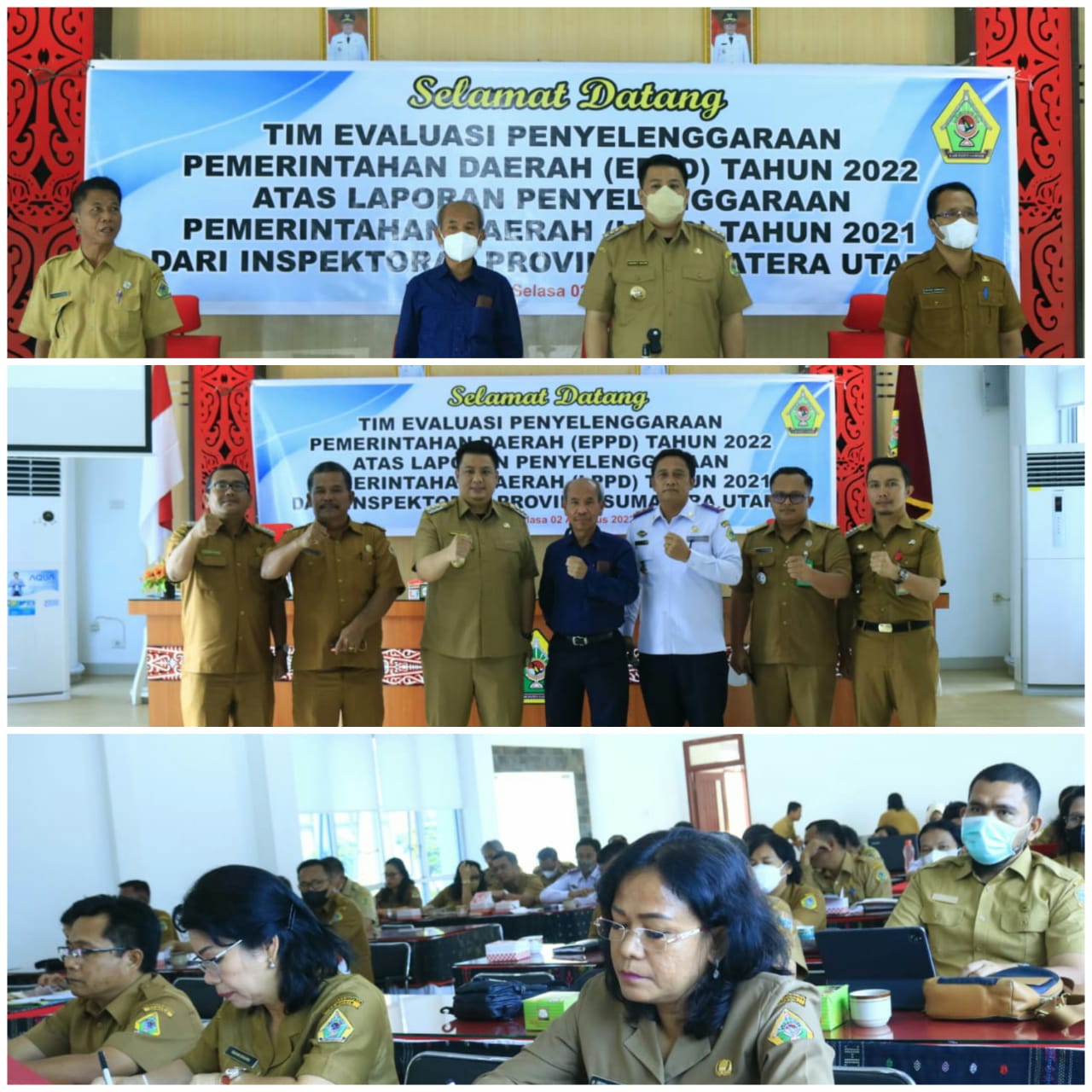 Inspektur Propinsi Sumatera Utara, Lasro Marbun bersama tim Evaluasi Penyelenggaraan Pemerintah Daerah (EPPD) Propsu melakukan rapat evaluasi terhadap LPPD Kabupaten Samosir Tahun 2021.