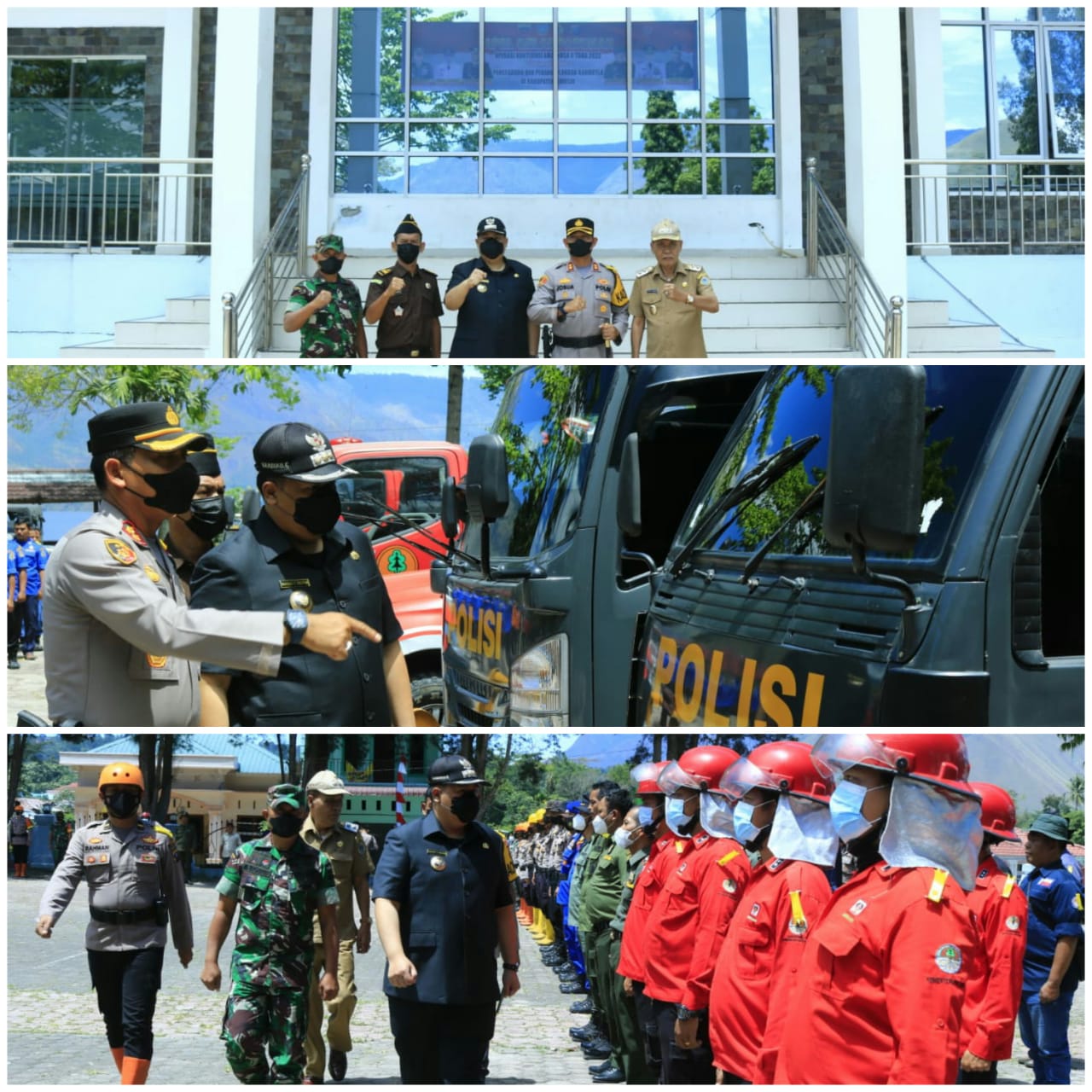 Bupati Samosir didampingi Kapolres Samosir, Josua Tampubolon, Wakil Bupati Samosir Martua Sitanggang, Kejari Samosir, Kasdim 0210 TU, memeriksa pasukan dan kelengkapan serta menyematkan pita operasi kepada perwakilan masing-masing satuan.