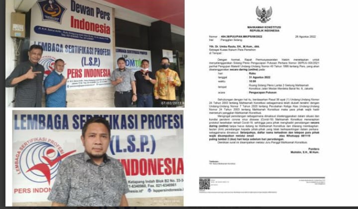 Sidang perkara Nomor 38/PUU-XIX/2021 tentang Pengujian Undang-Undang Nomor 40 Tahun 1999 tentang Pers terhadap Undang-Undang Dasar Tahun 1945 akan segera diputus oleh Mahkamah Konstitusi pada Rabu, 31 Agustus 2022 mendatang. Setelah melewati sidang yang berkepanjangan putusan perkara ini akhirnya akan segera dibacakan Majelis Hakim MK.