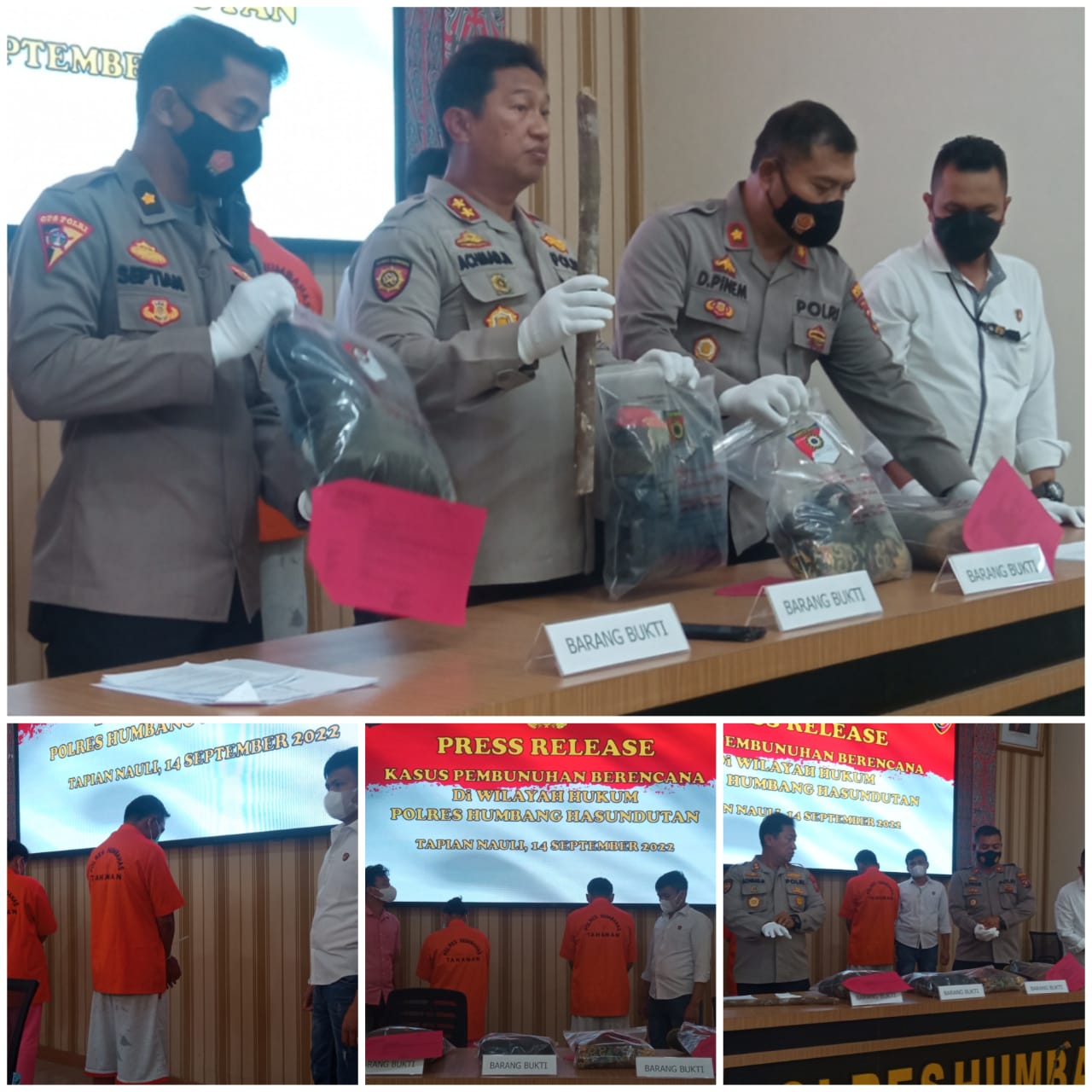 Kasat Reskrim Polres Humbahas Iptu Master SM Purba menambahkan, adapun barang bukti yang disita yakni sepeda motor jenis honda supra 1 bilah parang, bungkusan obat tanaman, ember warna hitam, 1 bungkus rokok dan mancis, 1 topi dan pompa semprot, sandal, kayu bulat, sarung bermotif batik, 1pasang sandal perempuan, kemeja lengan pendek dan celana panjang warna bitu dan HP merek vivo dan barsngbukti lain ada 1 baju kaos berkerah warna biru, celana panjang warna hitam, jacket warna hijau, HP merek samsung, STNK motor Supra dan kunci sepeda motor.