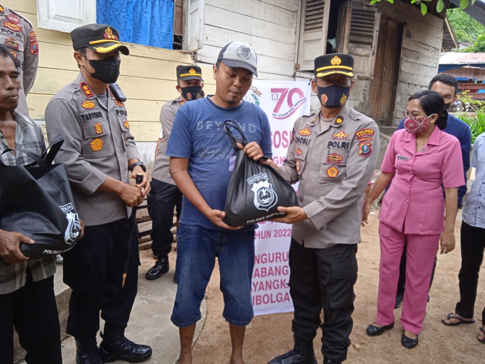 Kapolres Sibolga AKBP Taryono Raharja,SH,SIK,MH dan ibu Ketua Cabang Bhayangkari Sibolga Ny Ria Taryono salurkan Bantuan Sosial kepada masyarakat Sibolga yang tidak mampu serta tidak mendapatkan Bantuan Langsung Tunai (BLT),Selasa,27/09/2022 pukul 15.00 wib.