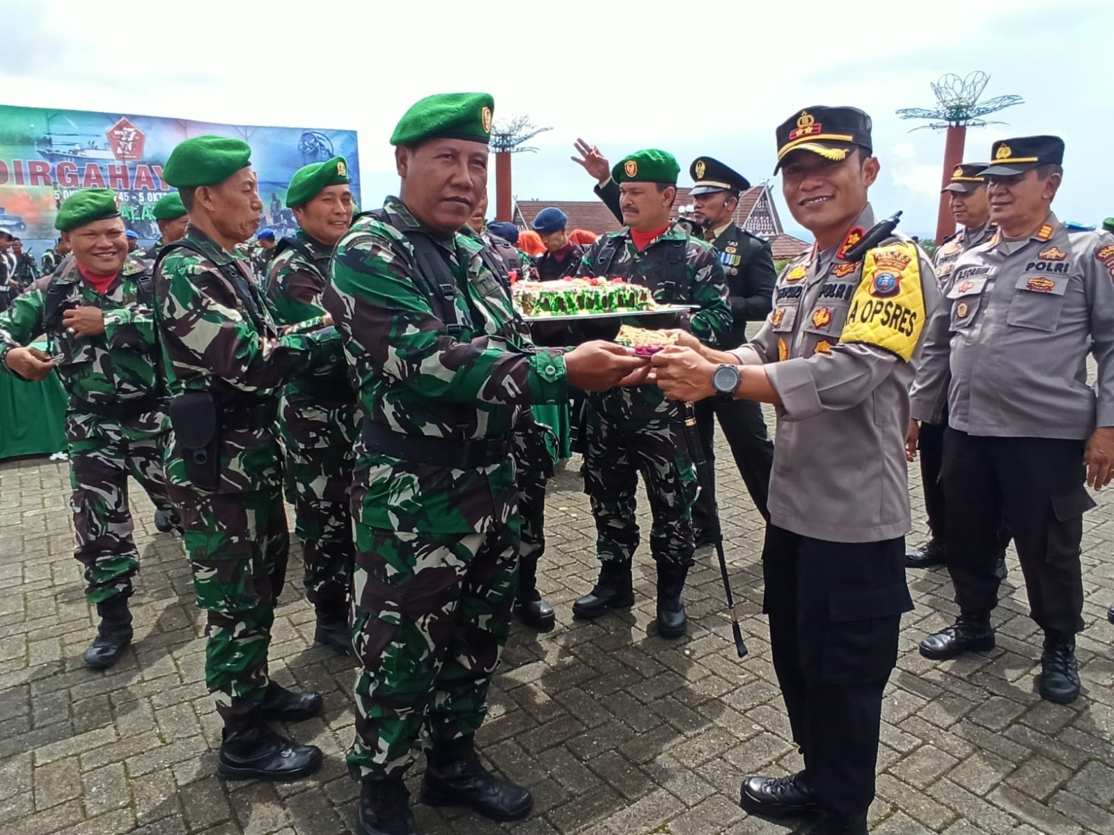 Kapolres Sibolga AKBP Taryono Raharja,SH,SIK,MH beri surprise dalam HUT TNI ke 77 tahun 2022,Rabu 05/102022,pukul 11.10 wib, di Lapangan apel kompleks kantor Bupati Tapanuli Selatan Jl. Prof. Lafran Pane desa Kilang Papan Kecamatan Sipirok Kabupaten Tapanuli Selatan, Dengan Thema “TNI Adalah Kita”