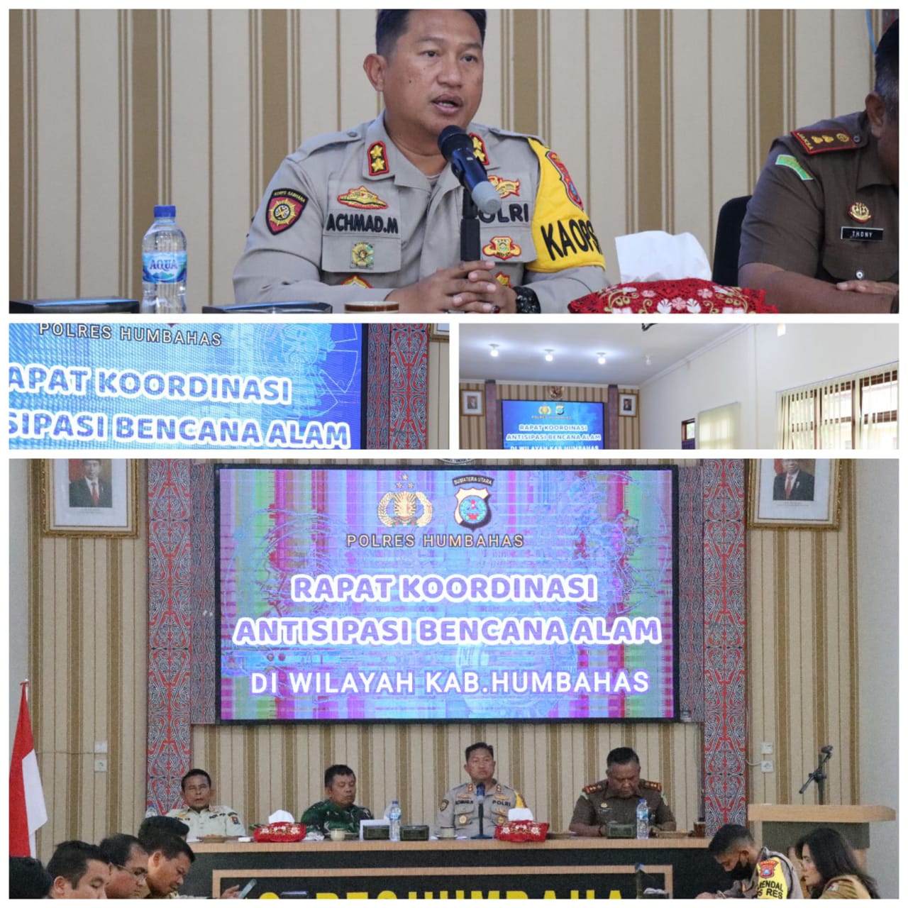 Kapolres Humbahas AKBP Achmad Muhaimin S.I.K., M.H mengatakan bahwa Rapat Koordinasi sehubungan dengan peringatan yang disampaikan oleh BMKG bahwa curah hujan dengan kategori rendah, menengah hingga sangat tinggi kemungkinan terjadi di beberapa wilayah indonesia, dimana di wilayah sumatera di perkirakan kategori menengah yang dapat mengakibat kan banjir, tanah longsor dll.