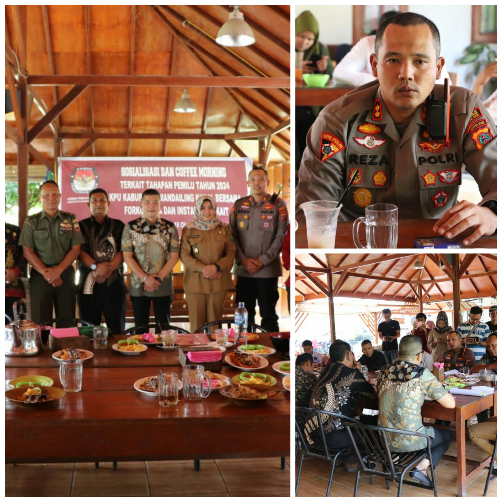 Kapolres Mandailing Natal AKBP H.M Reza Chairul Akbar Sidiq, S.IK.,S.H., M.H bersama Stake Holder,melaksanakan sosialisasi dan coffe morning terkait tahapan Pemilu 2024 di Resto Dapur Nenek Selasa18/10/2022.
