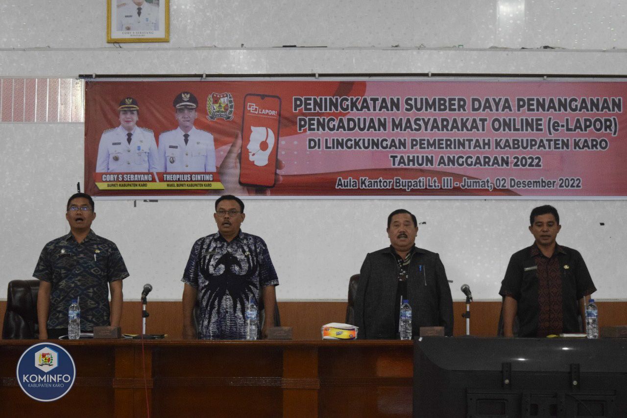 Dalam kesempatan ini sekretaris daerah atas nama Pemerintah Kabupaten Karo mengucapkan terimakasih atas kerjasama dan kolaborasi antar perangkat daerah dalam penanganan pengaduan masyarakat online (e-LAPOR).