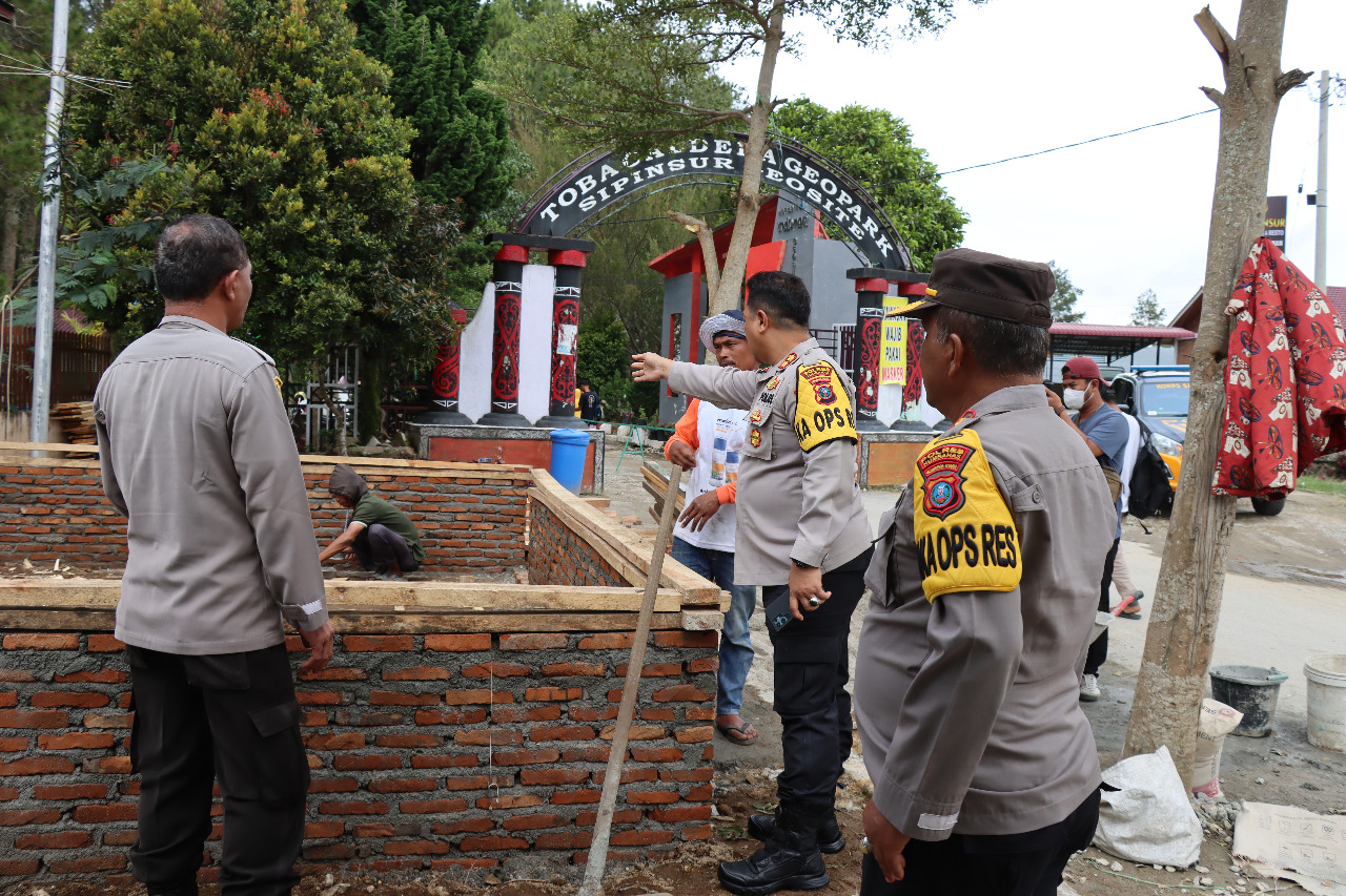 Guna pastikan Operasi Lilin Toba 2022 di Humbahas berjalan aman dan lancar, Kapolres Humbahas dan Para PJU tinjau pembangunan pos pelayanan di Objek Wisata Sipincur, Sabtu (17/12/2022).
