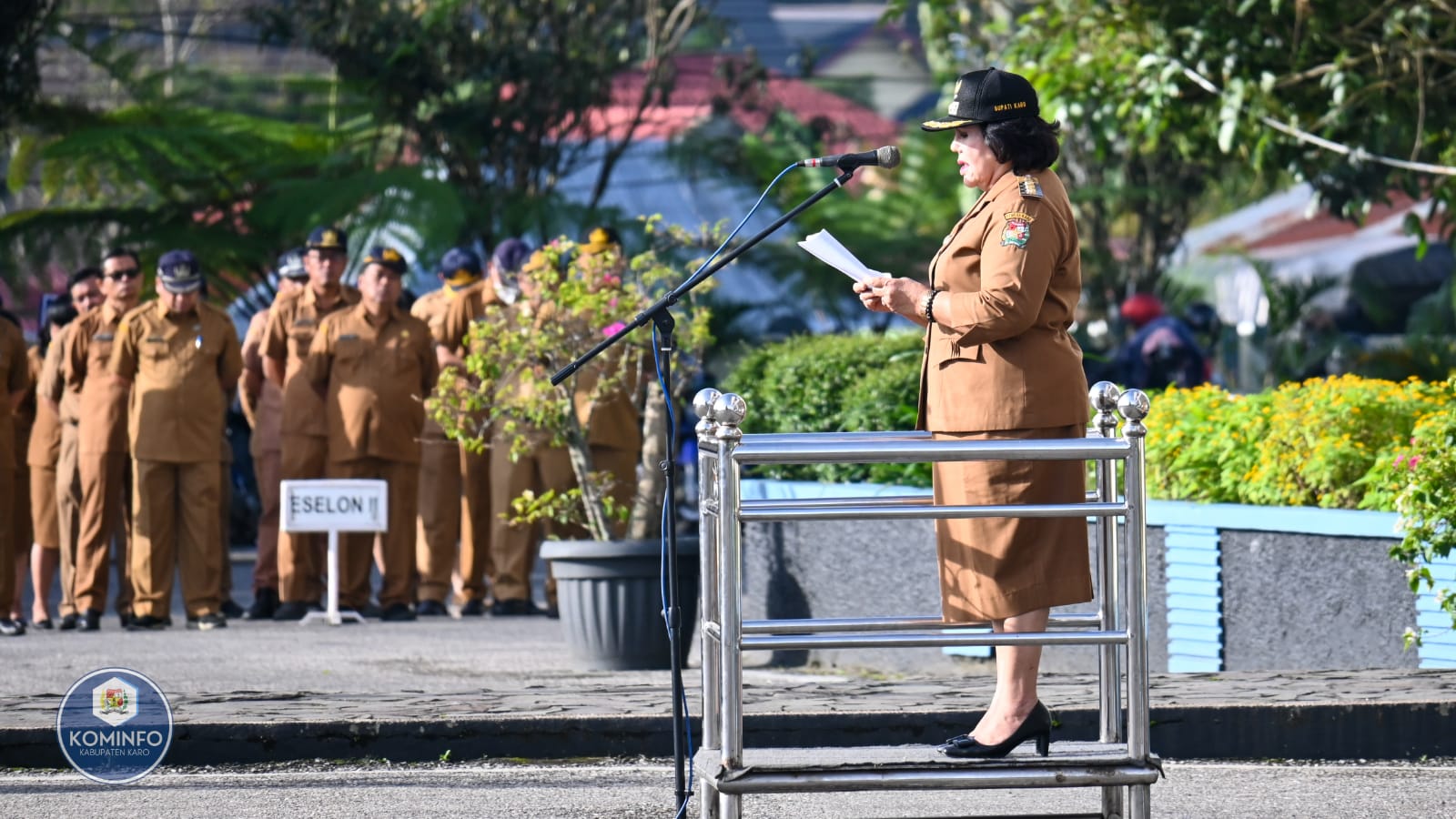 Bupati Karo Cory Sriwaty Sebayang pimpin apel gabungan pertama tahun 2023 yang digelar di Halaman Kantor Bupati, Jalan Jamin Ginting Kabanjahe, Senin (02/01/2023).