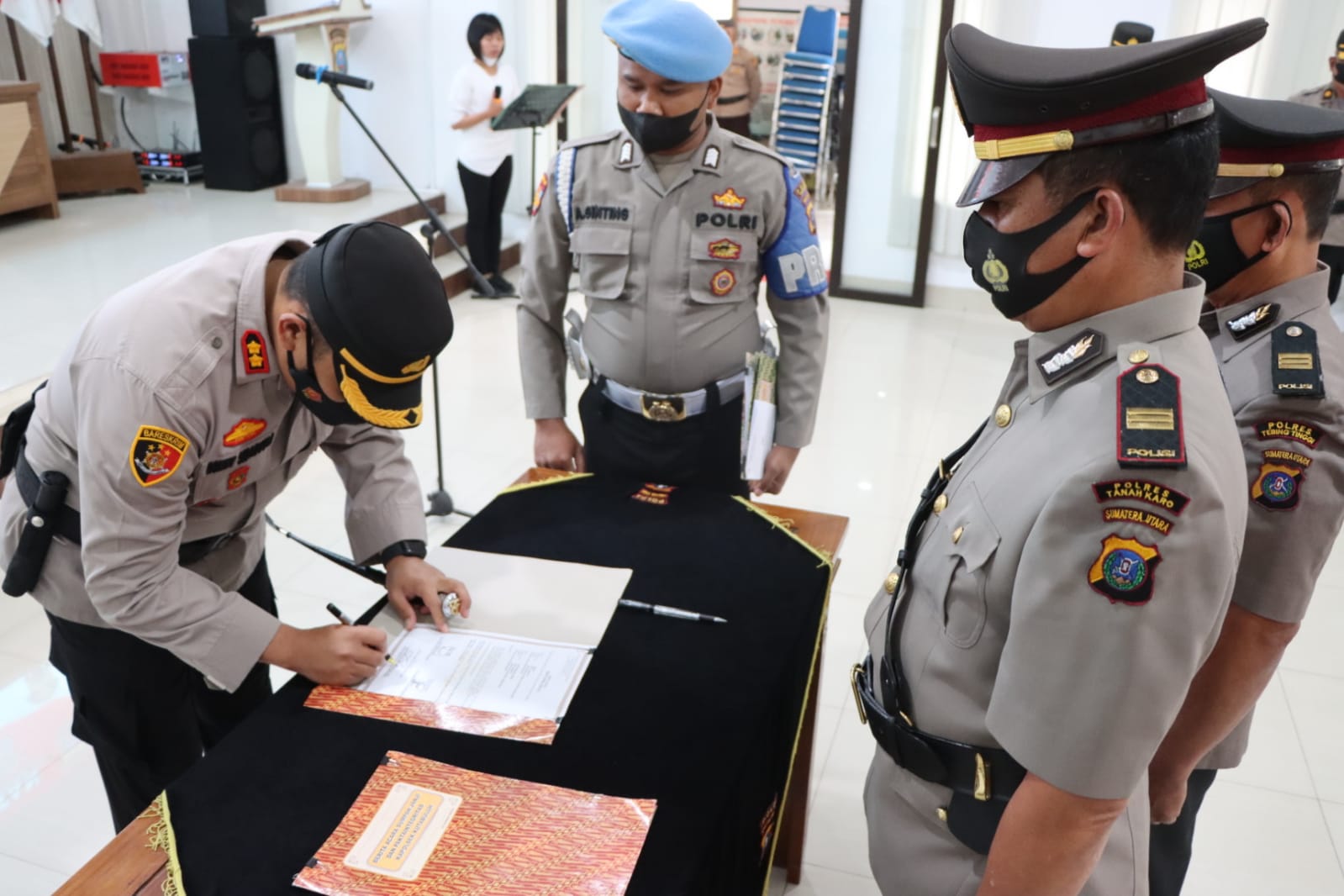 Kapolres Tanah Karo AKBP Ronny Nicolas Sidabutar, pimpin pelaksanaan Serah Terima jabatan Kapolsekta Kutabuluh, di Aula Pur-Pur Sage Mapolres Tanah Karo, Sumatera Utara Sabtu (07/01/2023) pukul 09.00 WIB