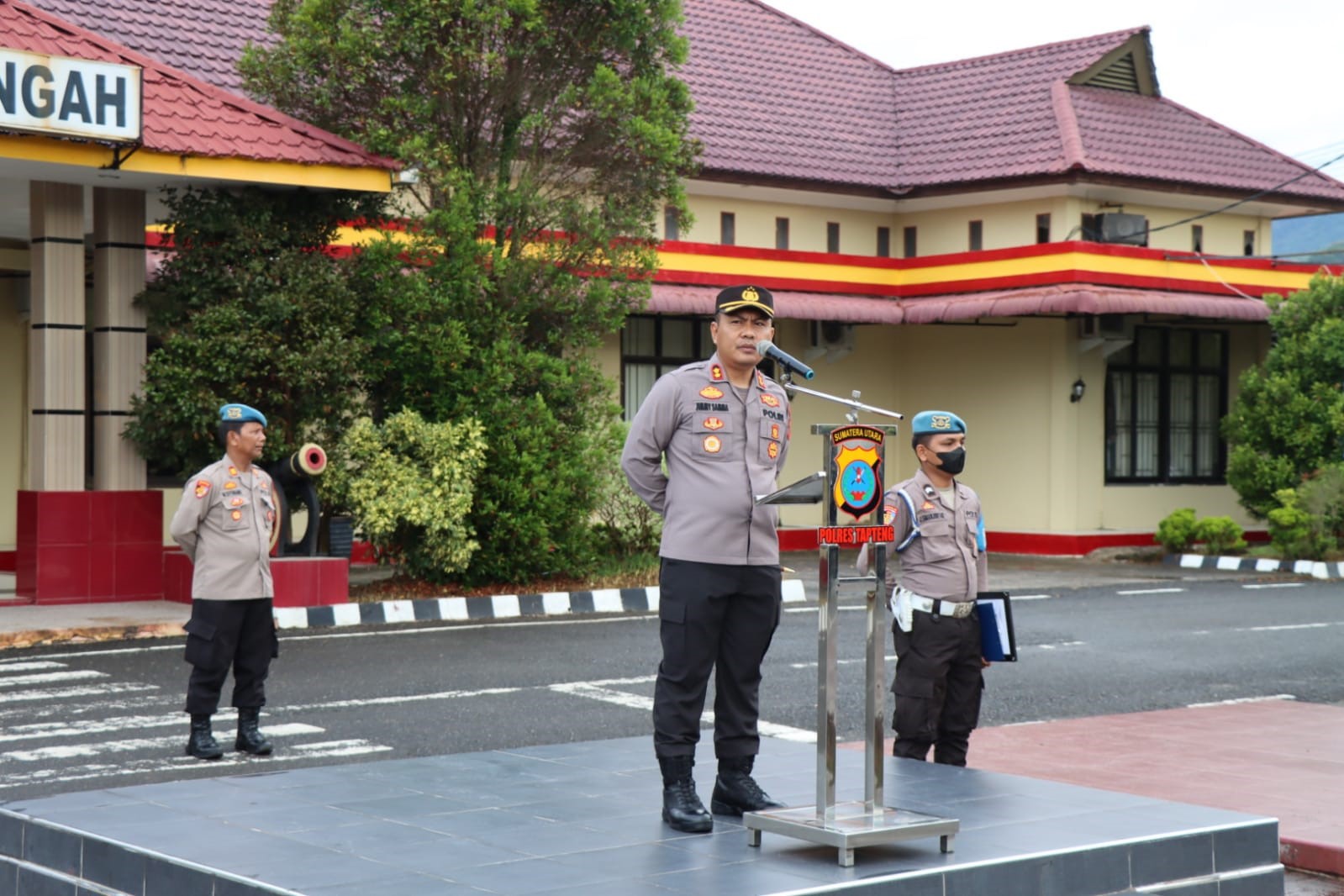 Kapolres Tapanuli Tengah AKBP Jimmy Christian Samma, SIK pimpin apel kesiapan BKO pengamanan kunjungan kerja Wakil Presiden Republik Indonesia Prof. Dr. (H.C.) K.H. Ma’ruf Amin Ke Wilayah Hukum Kab. Tapanuli Tengah, Senin (13/2/2023) Pukul 08.00 Wib.