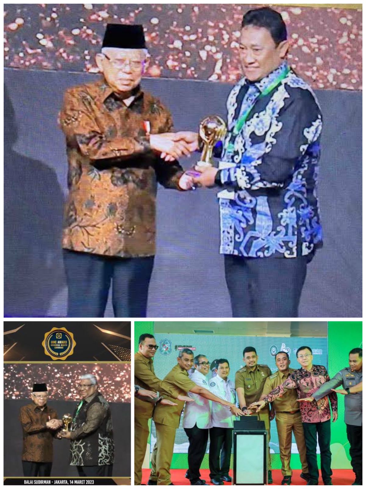 Penghargaan UHC ini diberikan langsung oleh Wapres didampingi oleh Menteri Koordinator Bidang Pembangunan Manusia dan Kebudayaan, Direktur Utama BPJS Kesehatan, Menteri Keuangan, Menteri Dalam Negeri, Menteri Kesehatan, Menteri Sosial, Menteri Perencanaan Pembangunan Nasional/Kepala Bappenas, serta Ketua Dewan Jaminan Sosial Nasional, di Balai Sudirman Jakarta, Selasa (14/03-2023).