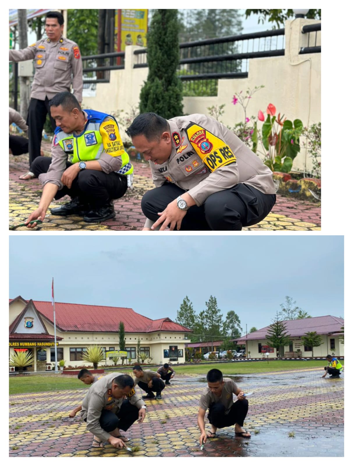 Terlihat para Anggota Polres Humbahas bersama-sama melakukan aktivitas seperti membabat rumput-rumput yang tumbuh secara liar dan menyapu membersihkan sampah-sampah yang ada disekitar lingkungan Mapolres.