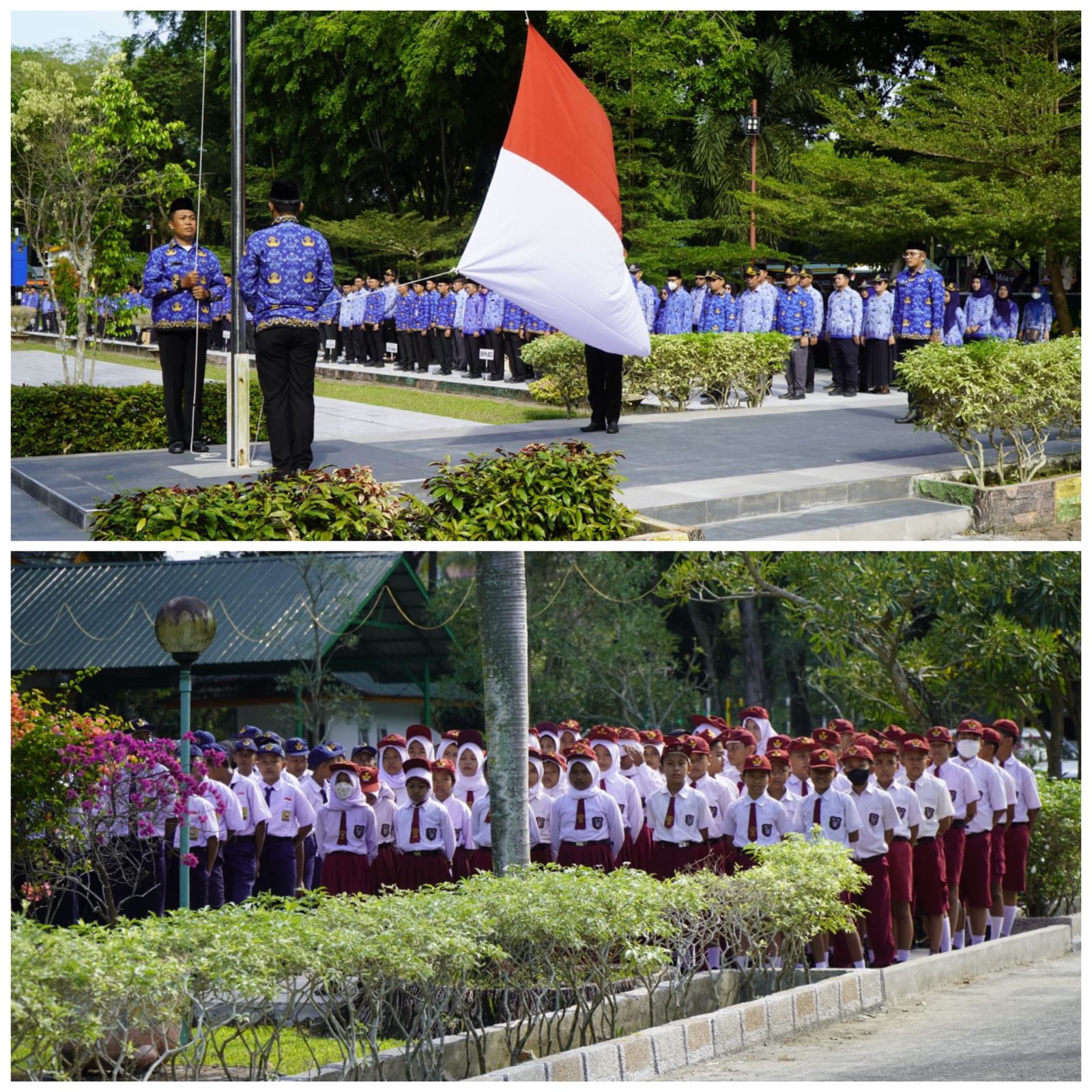 Pelaksana Tugas (Plt) Bupati Langkat H.Syah Afandin SH pimpin upacara peringatan Hari Pendidikan Nasional dan Peringatan Hari Otonomi Daerah ke-27 Tingkat Kabupaten Langkat Tahun 2023, bertempat di Halaman Kantor Bupati Langkat, Selasa (2/5/2023).