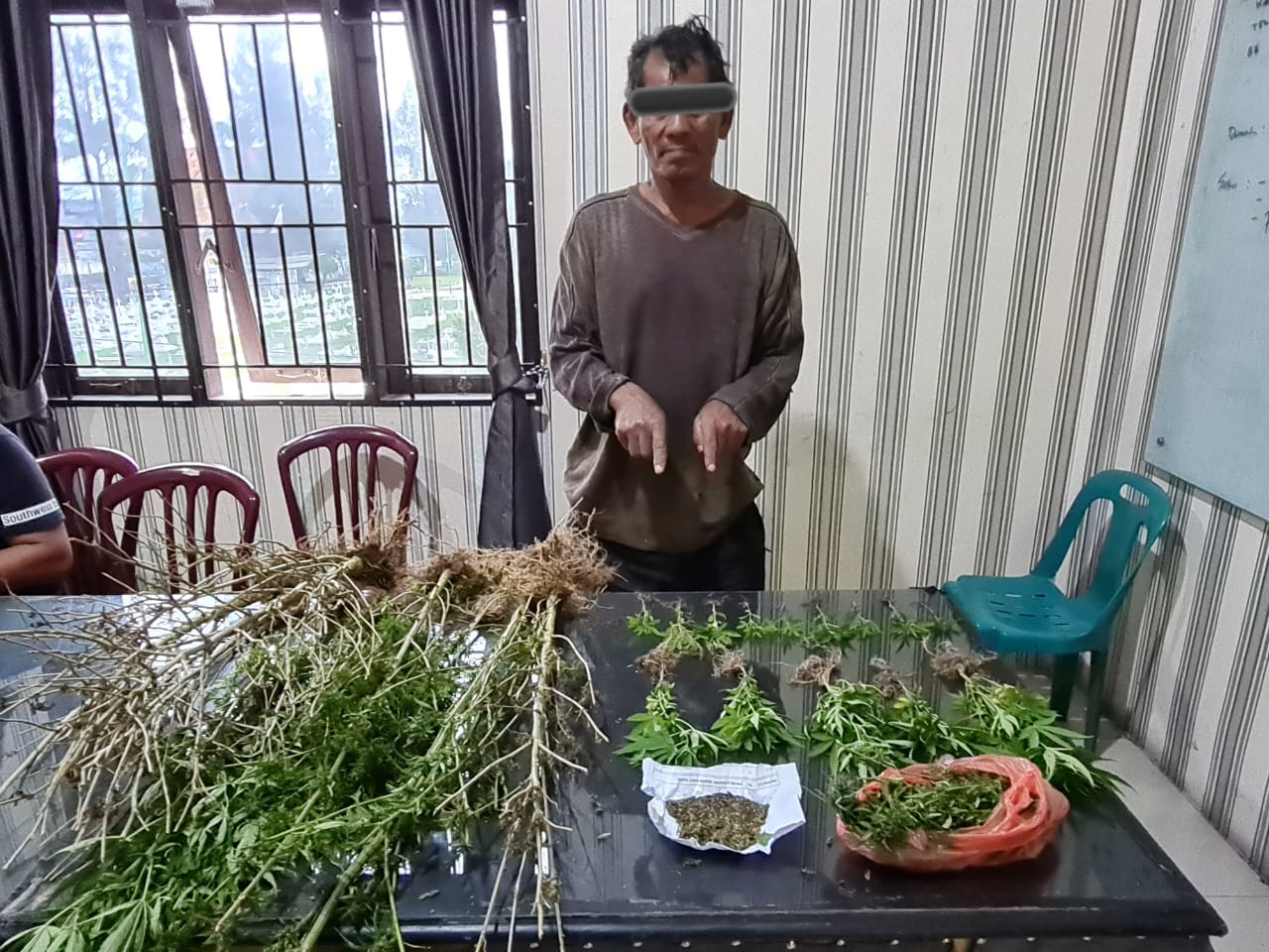 Pelaku ditangkap karena kedapatan telah menanam dan memiliki tanaman narkotika jenis tanaman ganja.