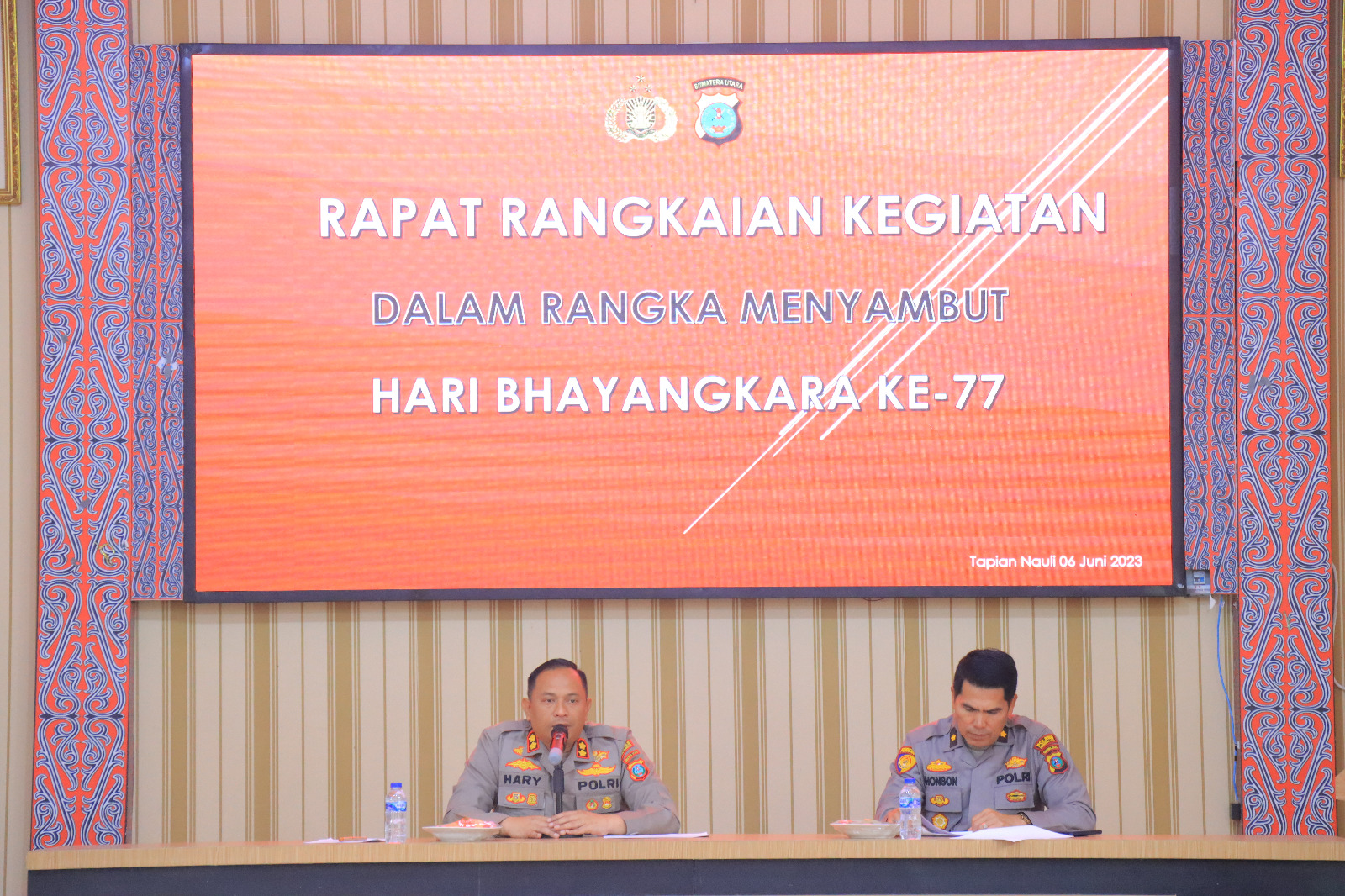 Dalam rangka menyambut hari Bhayangkara ke-77 Polres Humbang Hasundutan menggelar rapat kepanitiaan di Aula DP. Silitonga Polres Humbang Hasundutan. Selasa (06/06/2023)