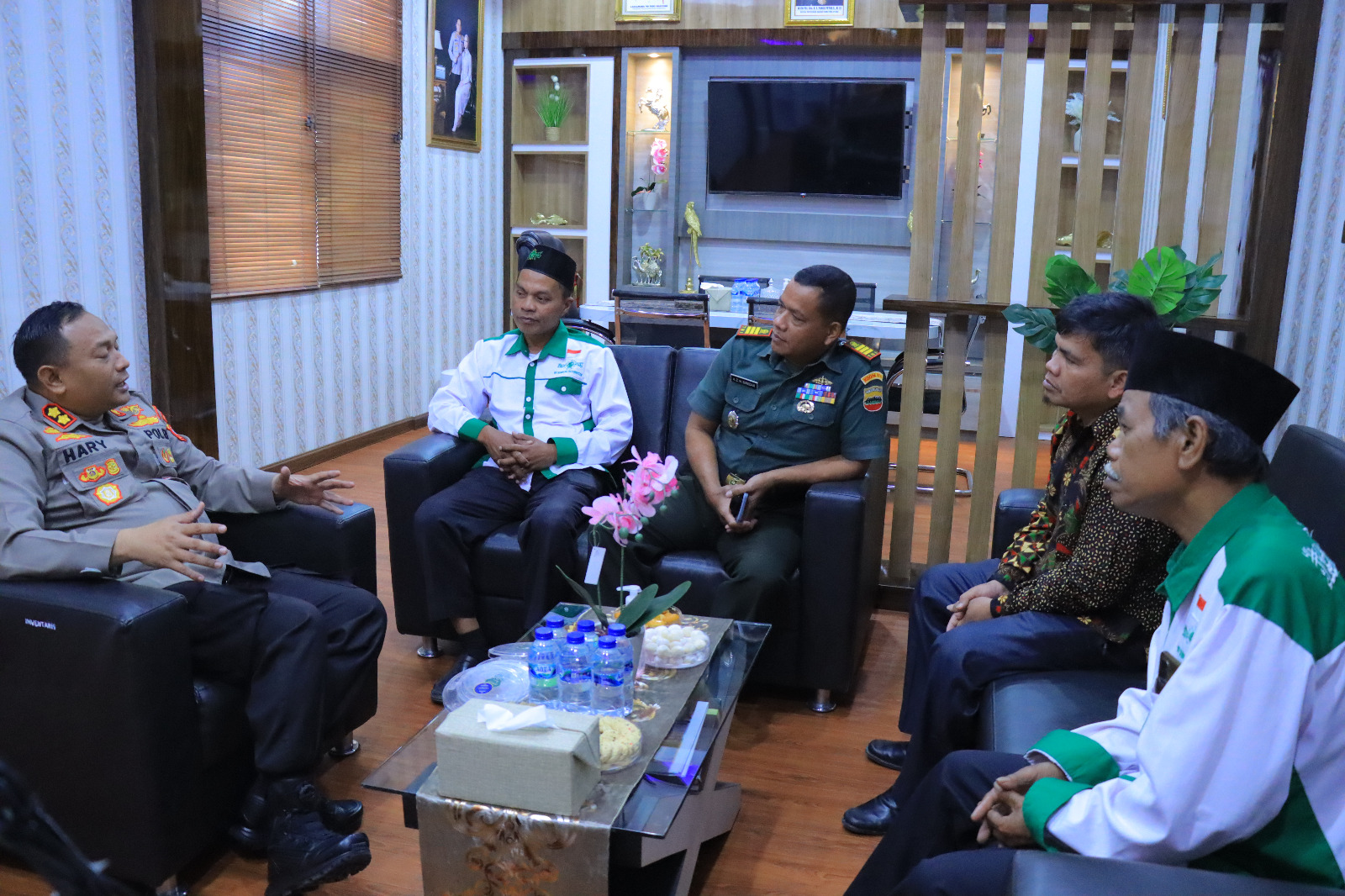 Kapolres Humbang Hasundutan AKBP HARY ARDIANTO, S.H., S.IK., M.H, sambut hangat kunjungan silaturahmi Ketua Pengurus Cabang Nahdatul Ulama (PCNU) Humbahas Ustadz Tarmizi di ruangan kerja Kapolres. Rabu (07/06/2023)
