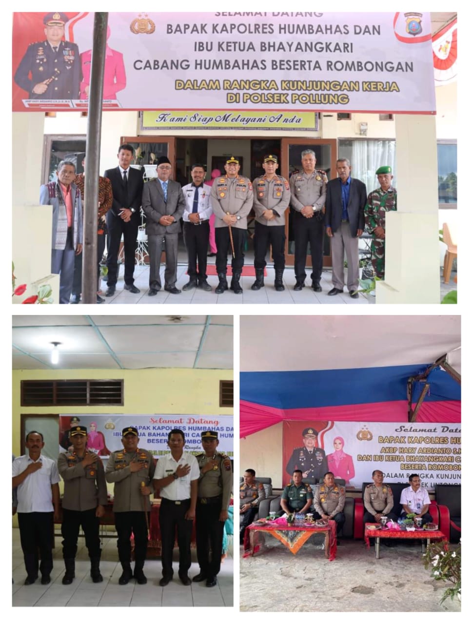 Kapolres Humbahas Akbp Hary Ardianto S.H.,S.I.K.,M.H bersama Ketua Bhayangkari Cabang Humbahas beserta rombongan pejabat utama Polres Humbahas dan pengurus Bhayangkari melaksanakan kunjungan kerja ke Polsek Lintong Nihuta, Polsek Dolok Sanggul,Polsek Pollung, Rabu (09/08/2023).