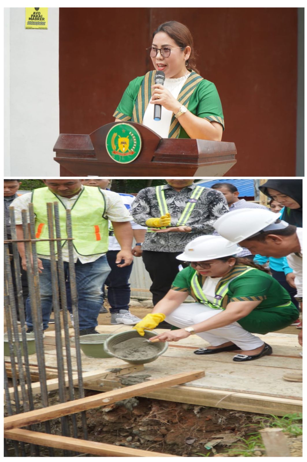 Selanjutnya, pemotongan Tumpeng dan foto bersama dan dilanjutkan dengan Pemakaian Baj perlindungan Diri yang dipakaikan langsung oleh Asosiasi Kontraktor Nasional (ASKONAS) Kabupaten Langkat serta di lanjutkan dengan peletakkan Batu Pertama di Labkesda kabupaten Langkat didampingi oleh kepala dinas kesehatan kabupaten Langkat beserta UPT Farmasi, Sub Koordinator, kasubbag, dan seluruh staf dinas kesehatan yang berhadir.