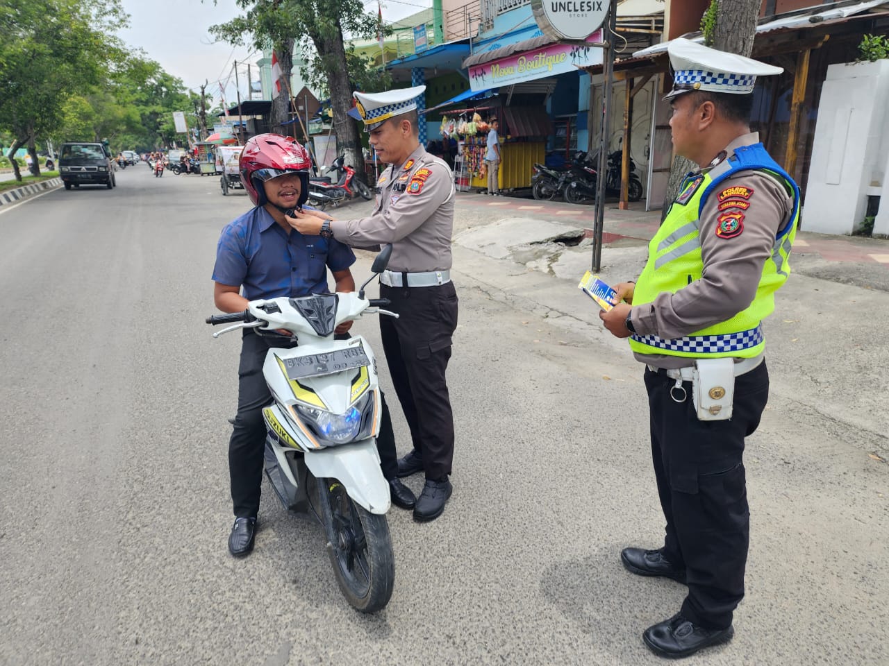 Kapolres Langkat AKBP FAISAL RAHMAT HUSEIN SIMATUPANG SIK SH MH melalui Kasat Lantas Polres Langkat membagi bagikan 50 helm secara Gratis kepada sejumlah pengendara sepeda motor yang melintas di jln Proklamasi dan seputaran kota Stabat Kab.langkat.