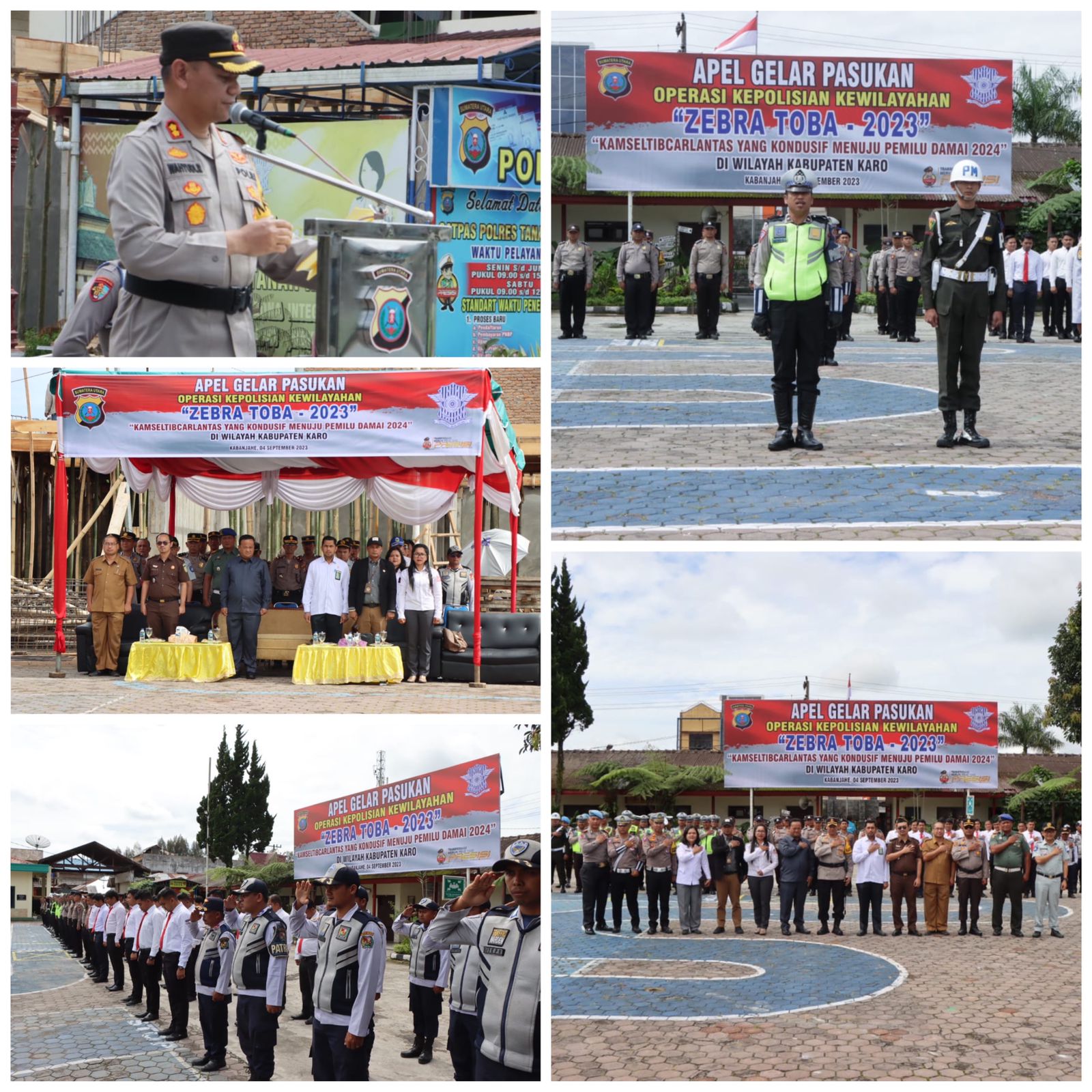 Kapolres Tanah Karo AKBP Wahyudi Rahman, pimpin Apel Gelar Pasukan Operasi Mandiri Kewilayahan Zebra Toba Tahun 2023, di halaman Apel Mapolres Tanah Karo, Provinsi Sumatera Utara Senin (04/09/2023) pukul 10.00 WIB.