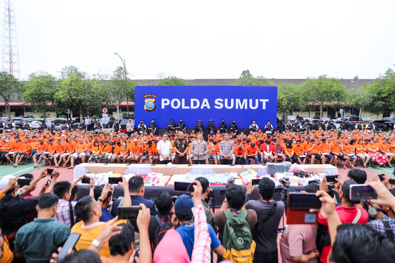 Kapolda mengatakan selama 22 hari terakhir pihak kepolisian telah menangkap 1.058 pelaku narkoba, dengan rincian 759 bandar, 299 pengguna. Sedangkan barang bukti 75,97 kg sabu dan 114 kg ganja.