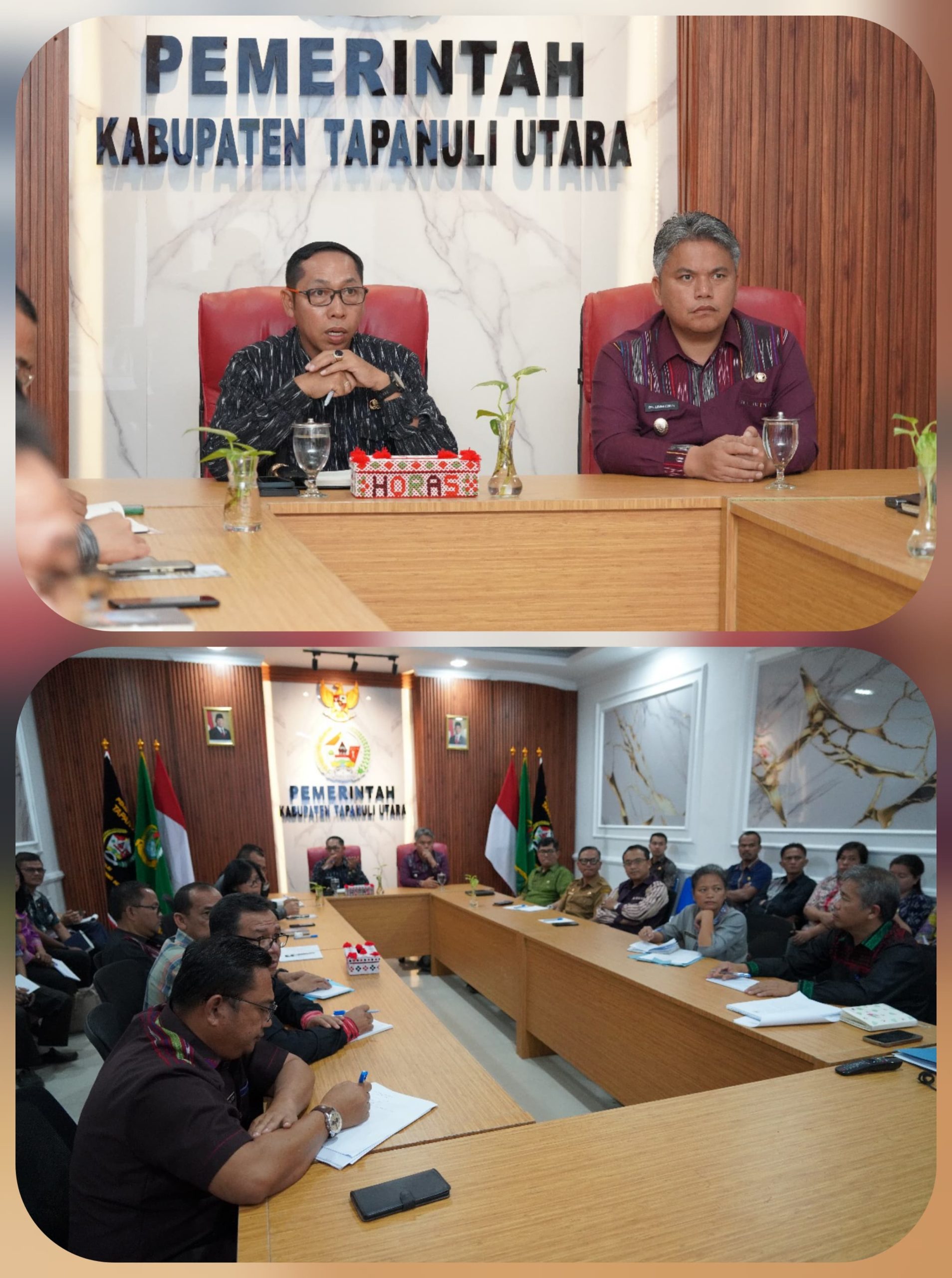 Rapat dipimpin langsung oleh Bupati Tapanuli Utara, Dr. Jonius Taripar Parsaoran Hutabarat, S.Si., M.Si., didampingi Wakil Bupati, Dr. Deni Parlindungan Lumbantoruan, M.Eng., serta Sekretaris Daerah, Drs. Henry Sitompul. Hadir pula para Asisten, staf ahli, dan pimpinan Organisasi Perangkat Daerah (OPD) terkait.