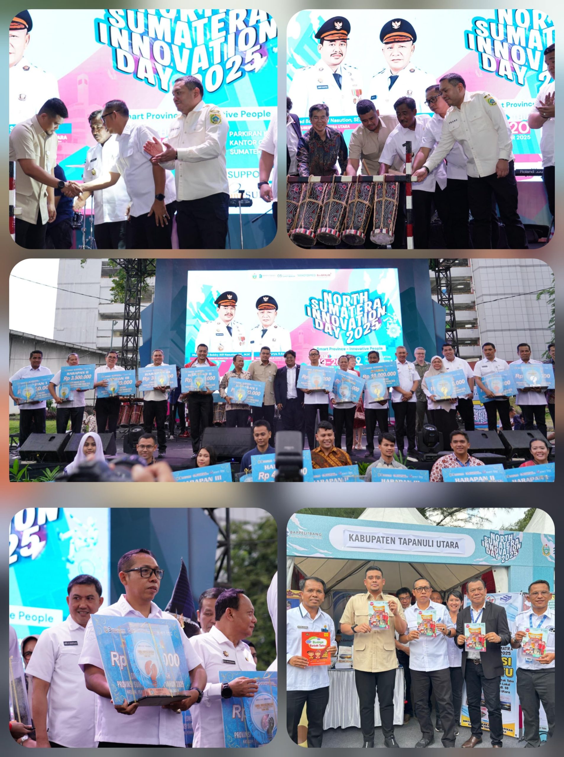 Bupati Tapanuli Utara, Dr. Jonius Taripar Parsaoran Hutabarat, S.Si., M.Si, didampingi Kepala Dinas Pendidikan Bontor Hutasoit serta Plt. Kepala Bappelitbangda Kristina Nahampun, menerima Penghargaan Juara III Lomba Inovasi Kategori Perangkat Daerah Kabupaten/Kota se-Sumatera Utara pada ajang North Sumatera Innovation Day 2025. Kegiatan ini berlangsung di Halaman Kantor Gubernur Sumatera Utara, Jalan Diponegoro, Medan, Rabu (19/11/2025).