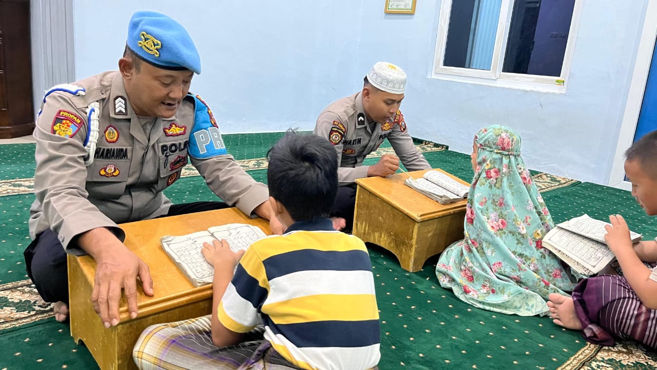 “Sebanyak tujuh anak mengikuti kegiatan belajar mengaji ini dengan antusias”, ujar Brigpol Harianda.