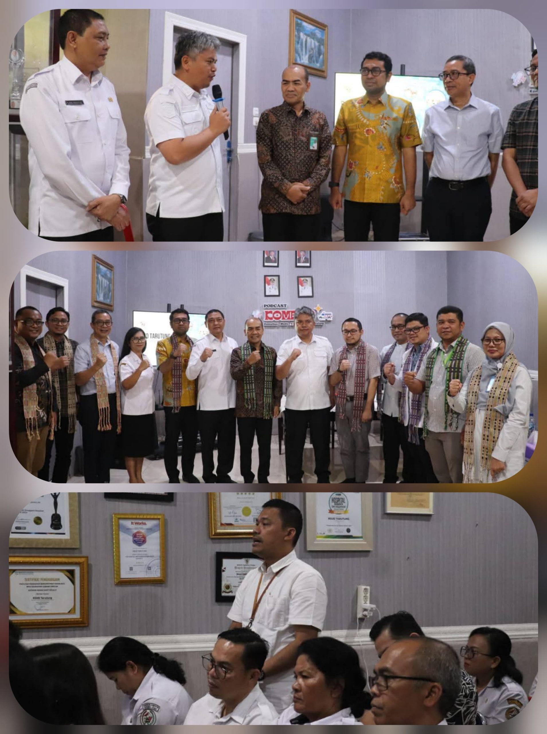Rangkaian kegiatan visitasi dilanjutkan dengan pemaparan kesiapan layanan oleh Direktur RSUD Tarutung, sesi tanya jawab interaktif, penyerahan cenderamata sebagai simbol kerja sama, serta peninjauan langsung ke berbagai unit pelayanan terkait.