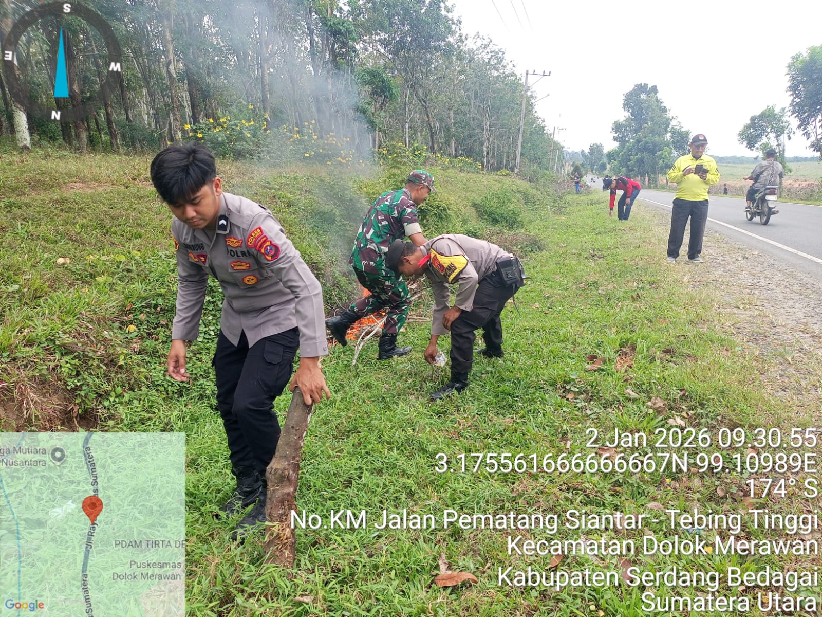 Dalam rangka menyemarakkan peringatan Hari Jadi Pemkab Serdang Bedagai (Sergai) ke-22, Polsek Dolok Merawan Polres Tebing Tinggi bersama warga masyarakat bergotong-royong yang berlangsung di Jalinsum Medan-P.Siantar Dusun III Desa Kalembak Kecamatan Dolok Merawan Kabupaten Sergai, Jumat (2/1/2026).