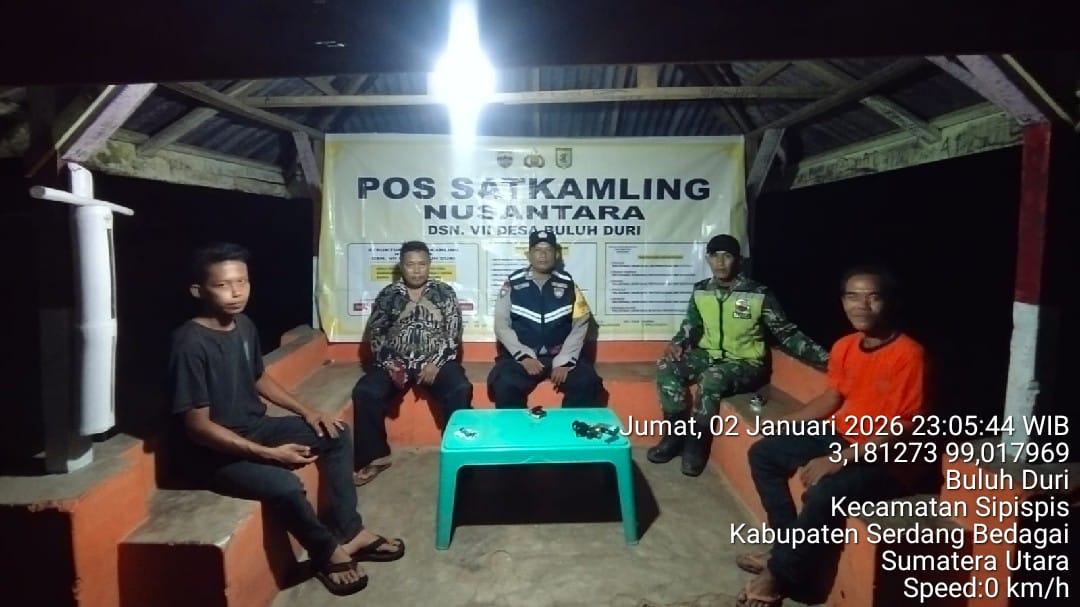 Dalam rangka meningkatkan keamanan dan ketertiban masyarakat, Polres Tebing Tinggi melalui Bhabinkamtibmas Polsek Sipispis Aiptu Darmawan Purba melaksanakan kegiatan sambang ke Pos Satkamling Dusun VII Desa Buluh Duri Kecamatan Sipispis, Kabupaten Serdang Bedagai, Jumat malam (2/1/2026).