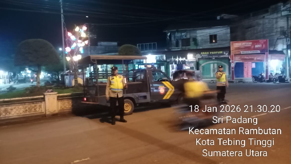 Guna menjaga situasi keamanan dan ketertiban masyarakat tetap kondusif, personel Polsek Rambutan Polres Tebing Tinggi melaksanakan kegiatan patroli blue light pada Minggu malam (18/1/2026).