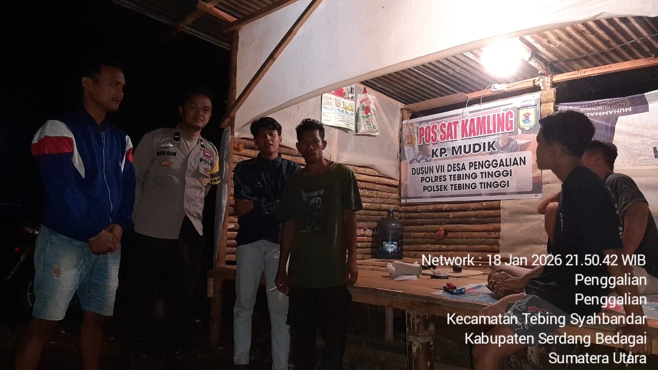 Bhabinkamtibmas Polsek Tebing Tinggi Resor Tebing Tinggi Aipda Muhammad Dani melakukan sambang serta monitoring dan berdialog dengan petugas jaga pos sat kamling Dusun VII Kp. Mudik Desa Penggalian Kecamatan Tebing Syahbandar Kabupaten Serdang Bedagai, Minggu (18/1/2026).