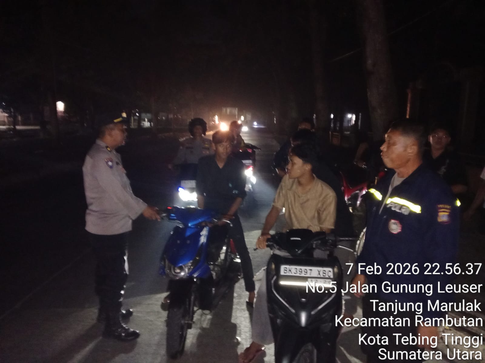 Dalam rangka mencegah tawuran geng motor dan balap liar, Polsek Rambutan melaksanakan patroli bersinggungan dengan Polsek Tebing Tinggi di perbatasan wilayah hukum Polsek Rambutan, Sabtu malam (7/2/2026) pukul 22.00 WIB hingga selesai.