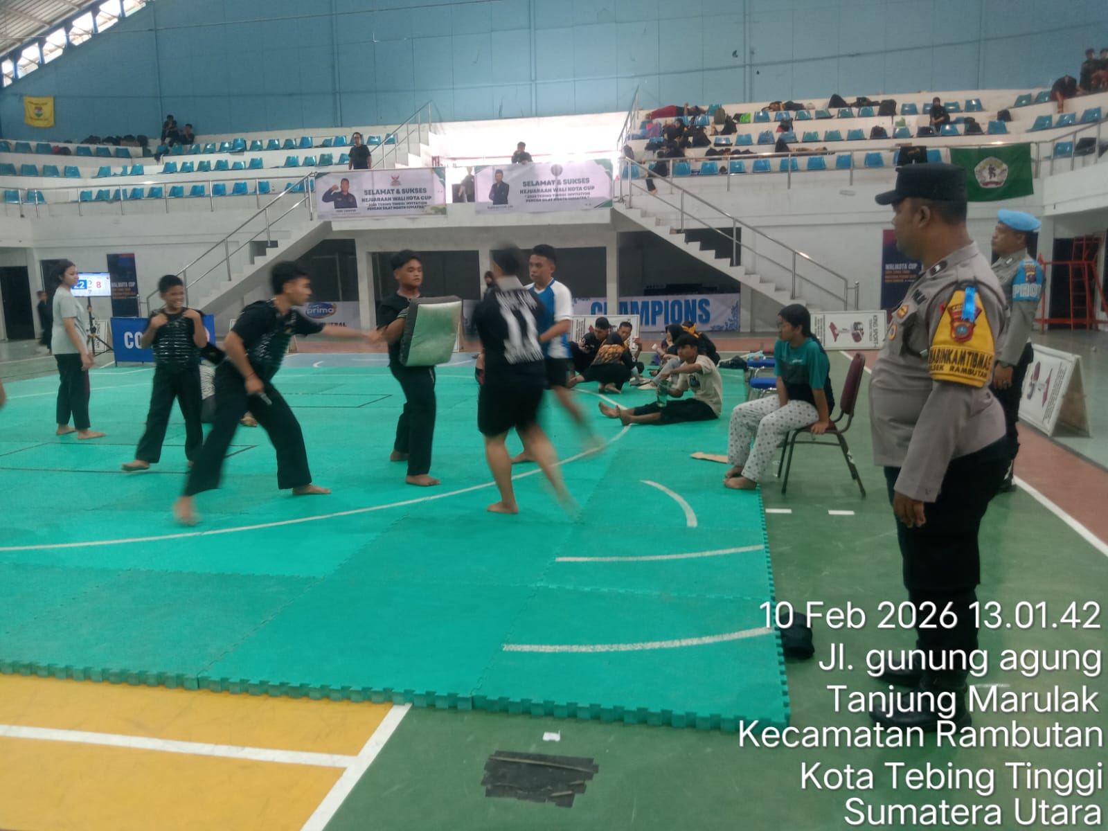 Polres Tebing Tinggi melaksanakan pengamanan kegiatan kejuaraan Pencak Silat Tebing Tinggi Invitation Sumatera Utara Tahun 2026 yang diselenggarakan oleh Ikatan Pencak Silat Seluruh Indonesia (IPSI) Kota Tebing Tinggi. Kegiatan berlangsung di GOR Asber Nasution Jalan Gunung Leuser Kecamatan Rambutan Kota Tebing Tinggi, Selasa (10/2/2026).