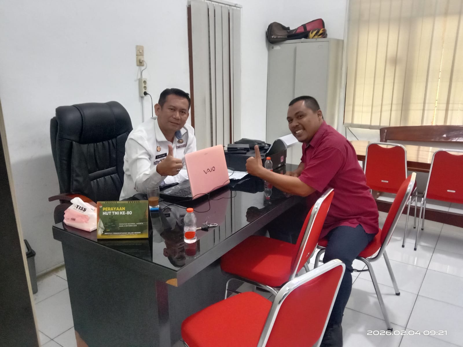 Dari pantauan Jurnalis dilapangan, Sekertaris Dinas Pendidikan RHG bersama rekanan pengadaan tersebut Inisial AG tampak duduk berdua diduga membicarakan pekerjaan proyek pengadaan dan lainnya.
