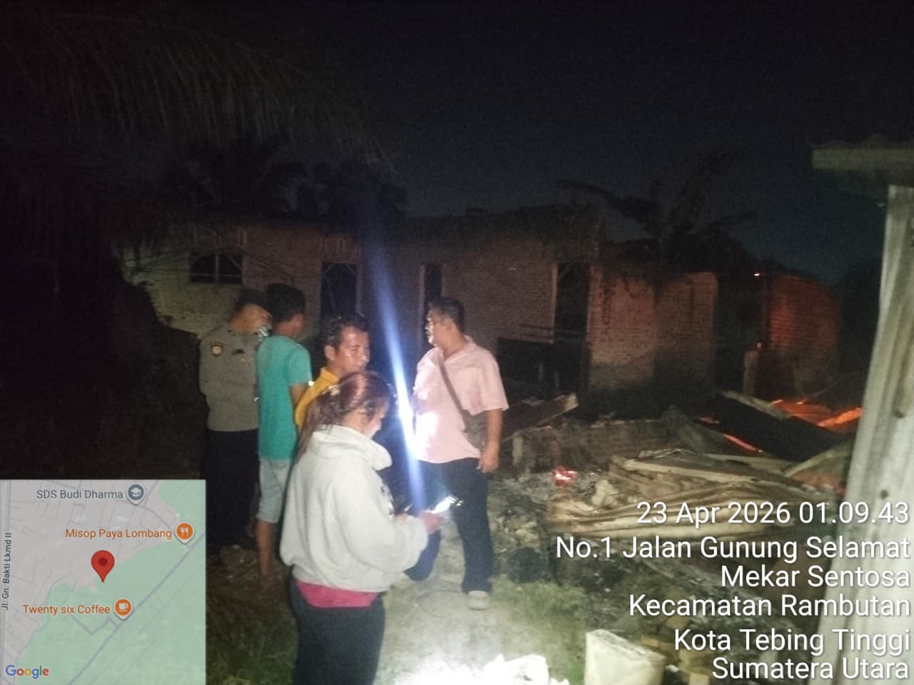 Sebuah rumah yang dijadikan cafe milik Taripar Siburian mengalami kebakaran pada Kamis dinihari (23/4/2026) sekitar pukul 00.30 WIB di Dusun X Desa Paya Bagas Kecamatan Tebing Tinggi Kabupaten Serdang Bedagai.
