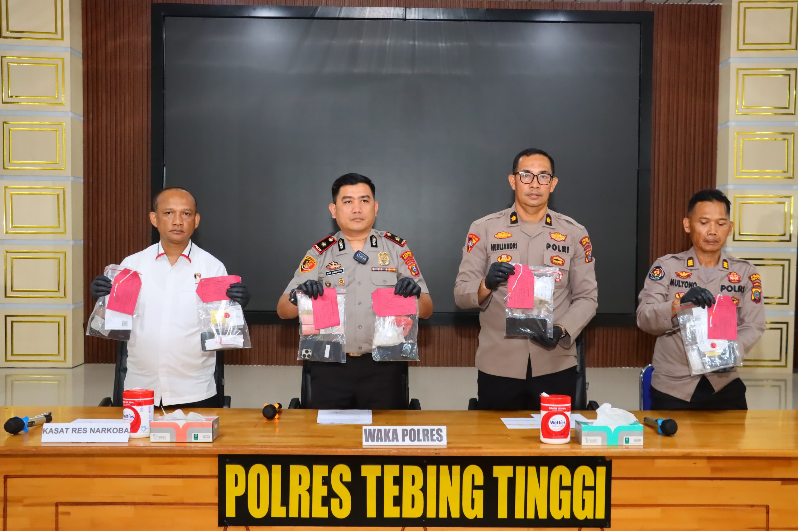 Polres Tebing Tinggi memaparkan hasil pengungkapan kasus narkotika sejak bulan Januari hingga April 2026. Kegiatan tersebut berlangsung di Aula Kamtibmas Mapolres Tebing Tinggi, Rabu (29/4/2026).